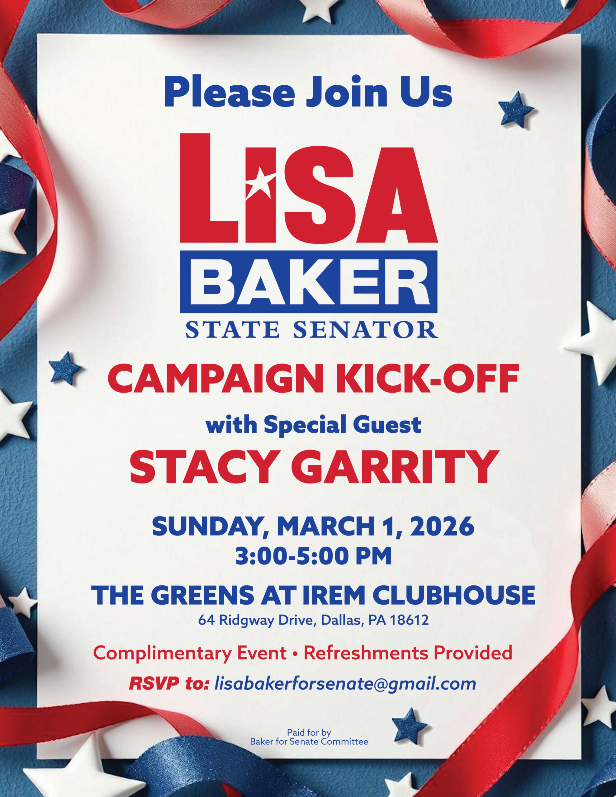 Campaign Kick-Off Event (w/ Special Guest Stacy Garrity)